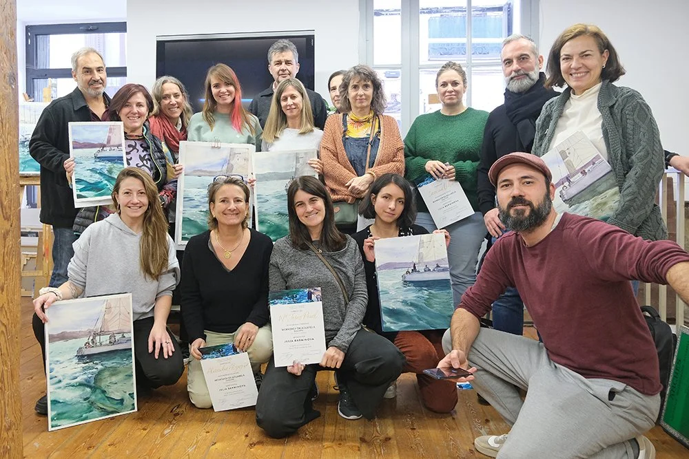 Gran demostración de acuarela de la mano de JULIA BARMINOVA que nos ha hecho encontrarnos como pez en el agua en un medio que conoce a la perfección.